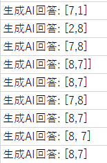 結果が下(途中でよく分からない回答でエラーになったけど)。