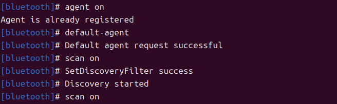 2.端末からbluetoothctlコマンドを入力(下のような[bluetooth]#の入力となる。